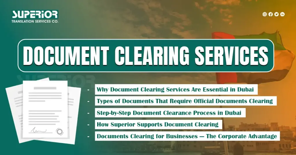 Understanding the complicated administrative environment that is Dubai’s complex administrative landscape in the United Arab Emirates requires more than just documents; it requires an expert partner who can sense the regulations of Dubai. As Dubai continues to establish itself as a business and commercial hub in the world and a major hub for international business, the need for document clearing services Dubai is at an all-time level for expats as well as corporate companies. If you’re working in the Department of Economy and Tourism (DET) or the Ministry of Foreign Affairs (MOFA) the sheer number of document clearing Dubai requirements could be overwhelming. Superior Translation Services provides a connection between your global goals as well as local regulations, making sure that each stamp, signature and document clearing company interaction is done with utmost exactness. In this article, we will explain the reason why professional clearance is no longer a luxury but rather an essential requirement to succeed within the UAE.